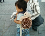 おうちに帰ってからも、ズルズル引きずってきては「ブー(と、リュックの留め具を指差す)」とせがむので、背中にくっつけてあげてます。リュックとはいえ、入れるところは小さくて、ほとんどぬいぐるみですけどね!